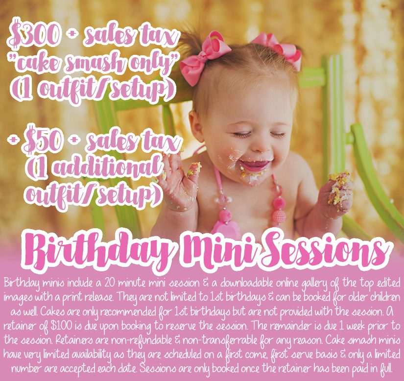 *Cake Smash/Birthday/Milestone Mini Sessions (no limit on age) (Studio) – LIMITED availability throughout the year*
